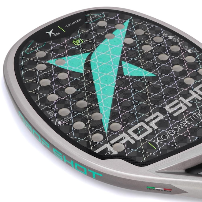 A Drop Shot é uma das marcas referência no mundo do Beach Tennis e Padel, conta com uma ampla linha de raquetes de todos os níveis e sempre com excelente qualidade. Um exemplo disso é a Raquete de Beach Tennis Drop Shot Conqueror 13 Comfort, entre outras tecnologias, destaca-se o Spin Coating, que confere ao produto uma sensação extra em cada golpe, permitindo um alto nível de jogabilidade.