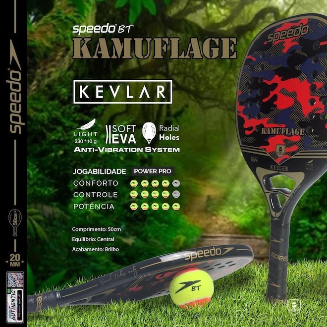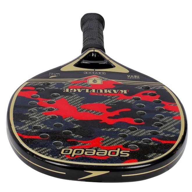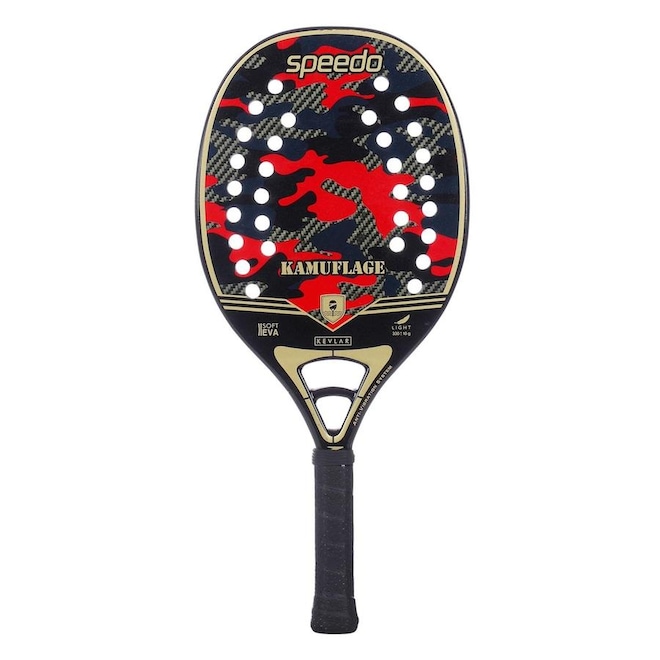 A raquete de Beach Tennis SPEEDO Kamuflage com tecnologia Kevlar foi desenvolvida para entregar máxima potência em um único equipamento. Focada para atletas que exigem o melhor equipamento disponível no mercado, esta raquete foi desenvolvida pela equipe de performance e tecnologia.
