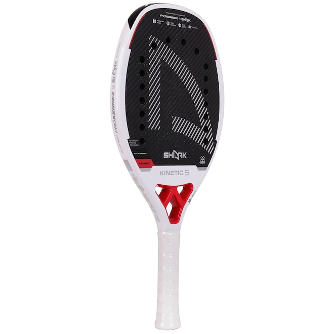 A Raquete de Beach Tennis Shark Kinetic , foi desenvolvida em Carbono 3k preenchida com EVA Soft Pro deixando-a confortável, potente e precisa. Indicada para jogadores de nível avançado, possui uma pintura com tratamento em micro grânulos que ajudam a gerar efeitos. Acompanha capa para proteção e transporte.