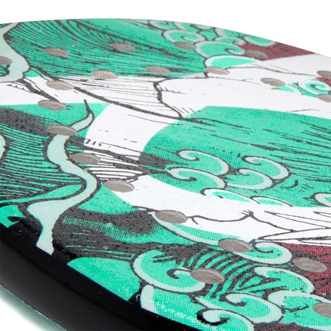 - Detalhamento: Possui uma pintura com tratamento de microgrânulos que ajudam a gerar efeitos, possui 38 furos dispostos na cabeça, sendo 16 nas área externa e 22 na área interna, escrita Outride em evidência na lateral e a escrita Hero na parte inferior da raquete