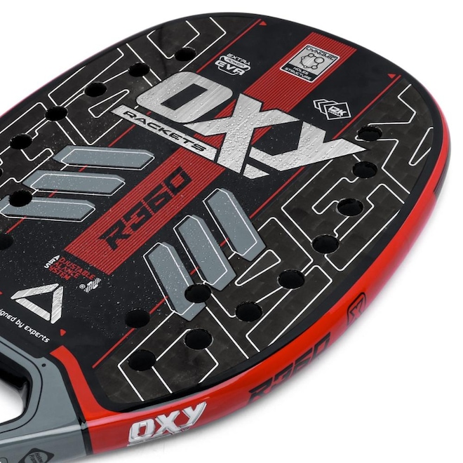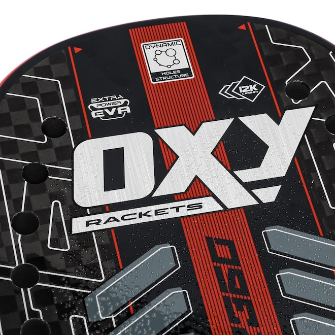 - Tecnologia: ADJUSTABLE BALANCE SYSTEM: As raquetes Oxy contam com o exclusivo Adjustable Balance System, tecnologia patenteada que permite ajustar o ponto de equilíbrio da raquete em tempo real. Através de um botão giratório no cabo, o jogador pode direcionar o peso para a cabeça (mais potência), para o cabo (mais controle) ou manter o equilíbrio central adaptando a raquete ao seu estilo e às demandas de cada partida. EVA EXTRA POWER: Espuma de baixa densidade com dureza entre 8 a 10 Shore, projetada para oferecer conforto, controle e excelente absorção de impacto. Ideal para jogadores que buscam precisão, suavidade nos golpes e menor vibração, sem abrir mão de durabilidade e desempenho consistente. DYNAMIC HOLES SYSTEM: Tecnologia de furação estratégica que amplia o sweet spot da raquete, garantindo performance consistente mesmo em golpes fora do centro. Melhora a estabilidade, reduz vibrações e oferece mais controle e potência durante o jogo. HOLLOW TUBE STRUCTURE: Utiliza uma estrutura tubular oca no quadro da raquete para aumentar resistência, estabilidade e controle, sem adicionar peso. Ideal para jogadores que buscam leveza, agilidade e alto desempenho em partidas intensas;