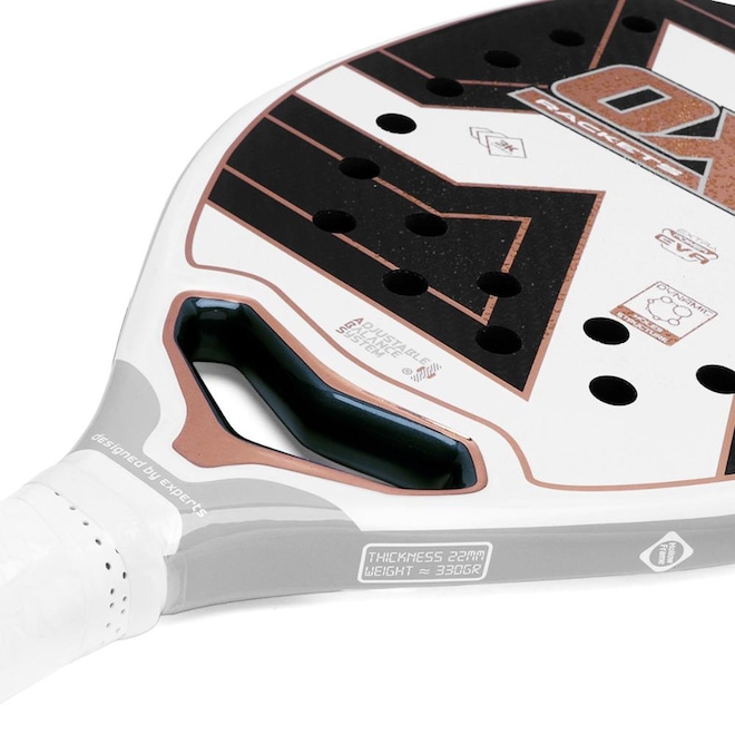 - Tecnologia: ADJUSTABLE BALANCE SYSTEM: As raquetes Oxy contam com o exclusivo Adjustable Balance System, tecnologia patenteada que permite ajustar o ponto de equilíbrio da raquete em tempo real. Através de um botão giratório no cabo, o jogador pode direcionar o peso para a cabeça (mais potência), para o cabo (mais controle) ou manter o equilíbrio central adaptando a raquete ao seu estilo e às demandas de cada partida. EVA EXTRA POWER: Espuma de baixa densidade com dureza entre 8 a 10 Shore, projetada para oferecer conforto, controle e excelente absorção de impacto. Ideal para jogadores que buscam precisão, suavidade nos golpes e menor vibração, sem abrir mão de durabilidade e desempenho consistente. DYNAMIC HOLES SYSTEM: Tecnologia de furação estratégica que amplia o sweet spot da raquete, garantindo performance consistente mesmo em golpes fora do centro. Melhora a estabilidade, reduz vibrações e oferece mais controle e potência durante o jogo. HOLLOW TUBE STRUCTURE: Utiliza uma estrutura tubular oca no quadro da raquete para aumentar resistência, estabilidade e controle, sem adicionar peso. Ideal para jogadores que buscam leveza, agilidade e alto desempenho em partidas intensas;