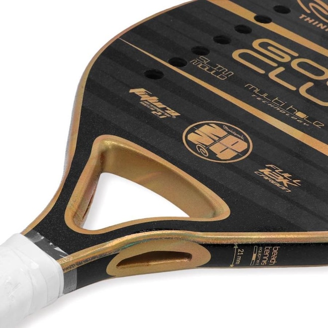 - Tecnologia: SLIM MOULD com espessura de 21mm, MULTI-HOLE com furos espalhados ao redor do centro da raquete, Black EVA Soft tecnologia de alta densidade para sensação intensa, controle e conforto;