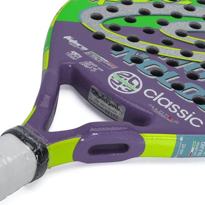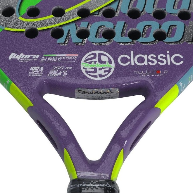 Conheça as Características da Raquete de Beach Tennis Quicksand Nolook Classic 2023 - Perfil: Avançado - Coleção: 2023 - Composição: Carbono e Fiberglass - Tecnologia: MULTI-HOLE com furos espalhados na região central da raquete, que facilitam a passagem de ar tornando os movimentos rápidos e leves e o exclusivo e patenteado FUTURA SYSTEM, um dispositivo tecnológico que permite uma redução consistente das vibrações causadas pelo impacto contínuo da bola, amenizando traumas do pulso, de cotovelo e de ombro, ao mesmo tempo em que mantém a raquete no mais alto nível de jogo.