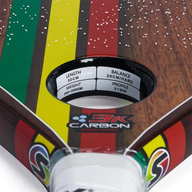 Descrição da Raquete de Beach Tennis Sexy Rasta Woody GT A Sexy Brand é uma das marcas de referência no mundo do Beach Tennis, oferece qualidade e profissionalismo técnico necessário para desfrutar da raquete em sua forma mais essencial. Um exemplo disso é a Raquete de Beach Tennis Sexy Rasta Woody GT, confeccionada para jogadores que buscam uma raquete que ofereça alta precisão! Conheça as Características da Raquete de Beach Tennis Sexy Rasta Woody GT - Perfil: Performance; - Composição: 100% 3K Carbon; - Núcleo: Super Soft EVA; - Tecnologia: 3K Carbon: é um tipo de carbono plano que tem 3.000 fios de carbono entrelaçados, formando uma malha resistente e leve. Essa tecnologia oferece uma ótima potência, controle e conforto. EVA: espuma mais macia, permite mais precisão e um ponto ideal maior. MegaGrit: dura mais e agarra melhor a bola para um efeito de rotação de alta potência. SXY Power ORB: sistema de orifício côncavo de linha única permite consistência e controle em um ponto ideal mais amplo, ao mesmo tempo em que fornece mais potência para ataques ofensivos; - Comprimento: 50 cm; - Peso: 345 a 355g; - Detalhamento: Pintura exclusiva com superfície áspera, contém 14 furos, acompanha protetor da cabeça; - Espessura: 21 mm; - Garantia do Fabricante: 90 dias contra defeito de fabricação. OBS: Raquetes personalizadas (com tratamento adicional) perdem a garantia do fabricante; - Origem: Importado.