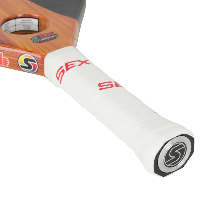 De nível profissional, possui a qualidade da marca em todos os detalhes com 14 furos menores e 1 maior em sua superfície áspera, perfeito para quem busca mais potência e controle a cada batida.Desenvolvida em Carbon 3K e EVA SOFT, a Raquete de Beach Tennis Sexy possui empunhadura emborrachada e balanço inferior a 315mm.