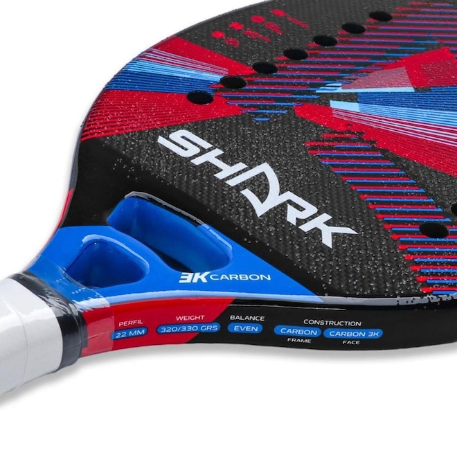 Conheça as Características da Raquete de Beach Tennis Shark Attack Pro - Perfil: Performance - Coleção: 2023 - Composição: Estrutura: Carbono.