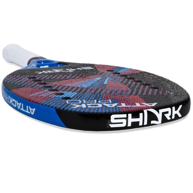 Descrição da Raquete de Beach Tennis Shark Attack Pro A Shark é uma das marcas referência no mundo do Beach Tennis, conta com uma ampla linha de raquetes de todos os níveis e sempre com excelente qualidade.Um exemplo disso é a Raquete de Beach Tennis Shark Attack Pro, ela foi desenvolvida com tecnologia EVA Soft.