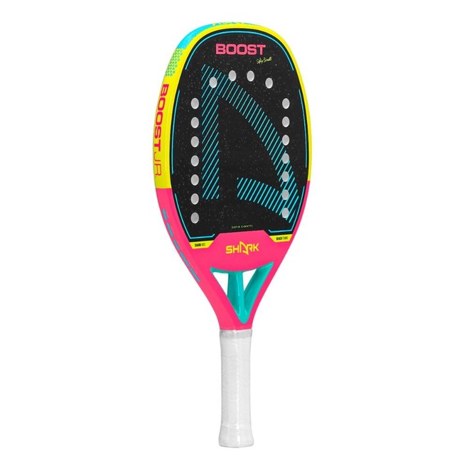 A Shark é uma das marcas referência no mundo do Beach Tennis, conta com uma ampla linha de raquetes de todos os níveis e sempre com excelente qualidade. Um exemplo disso é a Raquete de Beach Tennis Shark Boost Jr Sofia Cimatti desenvolvida em fibra de vidro para um ótimo desempenho dos jovens apaixonados pelo esporte.