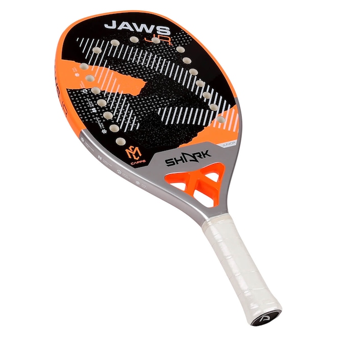 A Raquete de Beach Tennis Shark Jaws Junior, foi desenvolvida em fibra de vidro preenchida com EVA Soft Pro deixando-a confortável, potente e precisa. Indicada para jogadores de nível iniciante de 9 a 12 anos, possui uma pintura com tratamento em micro grânulos que ajudam a gerar efeitos. Acompanha capa para proteção e transporte.