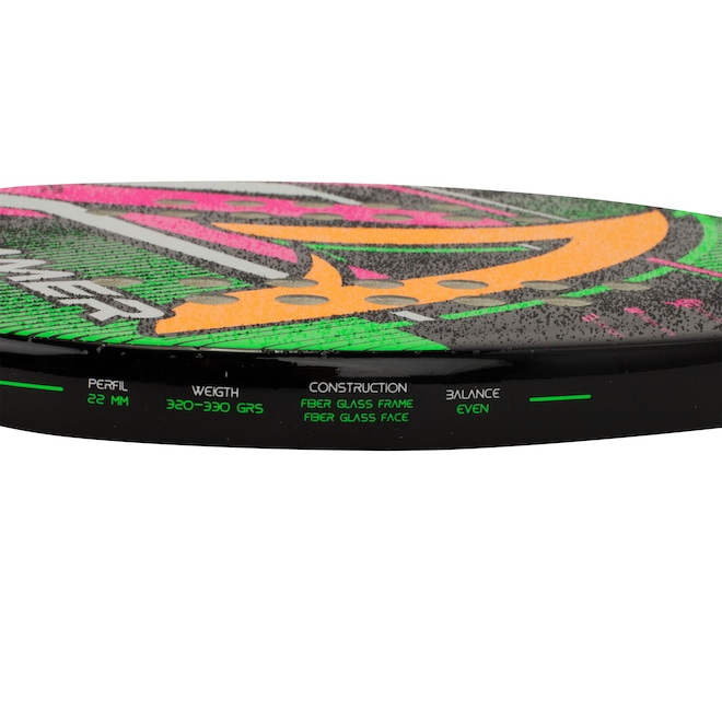 Feita com fibra de vidro e equipada com tecnologia EVA Soft, essa raquete proporciona potência, conforto e absorção de vibração para jogadas mais precisas.