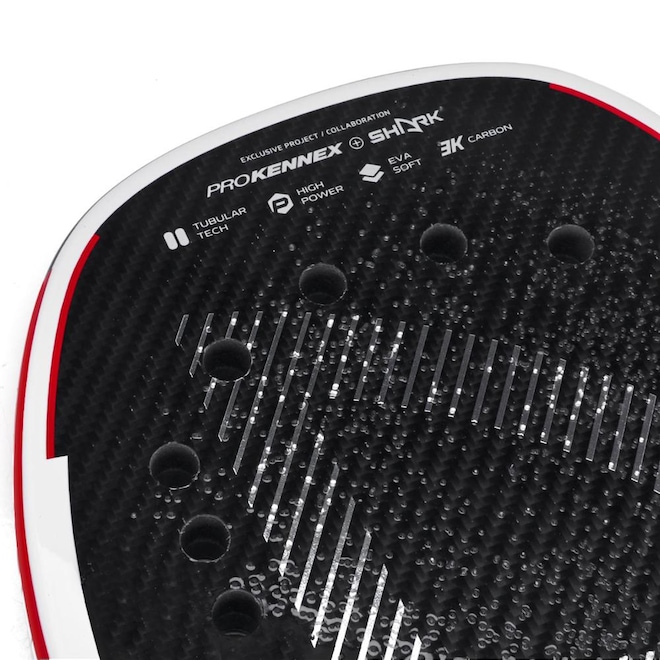 3K CARBON: material leve e resistente ajuda a aumentar a potência e a precisão da raquete; HIGT POWER: ajuda a aumentar a potência e o controle. KINETIC X: Utiliza microesferas de massa cinética encapsuladas no aro da raquete para proporcionar aos jogadores uma experiência inigualável de potência, controle e conforto;