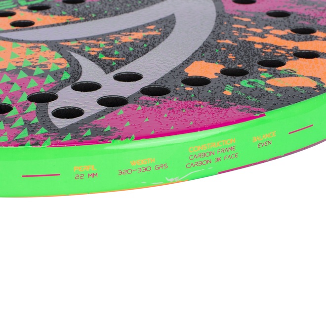 TUBULAR TECH: Combinação de tecidos tubulares duplos de carbono pré-impregnados com resinas de máxima durabilidade que garantem homogeneidade e rigidez em todas as áreas da face sem a perda da energia durante a batida.