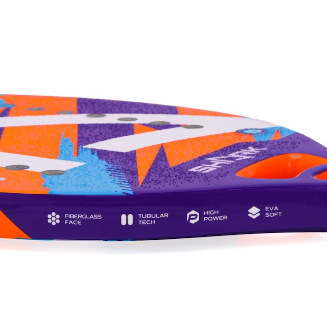 - Tecnologia: TUBULAR TECH: Tecidos tubulares duplos de carbono pré-impregnados com resinas de máxima durabilidade, proporcionando homogeneidade em todas as áreas da face e proporcionando maior rigidez, portanto, não é perdida energia da batida devido à distorção da armação. HIGH POWER: Oferece uma combinação avançada de materiais e design que proporcionam uma excelente potência nos golpes, permitindo que você atinja a bola com mais força e precisão. EVA SOFT: Absorção de impactos;
