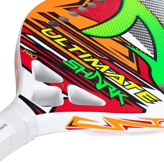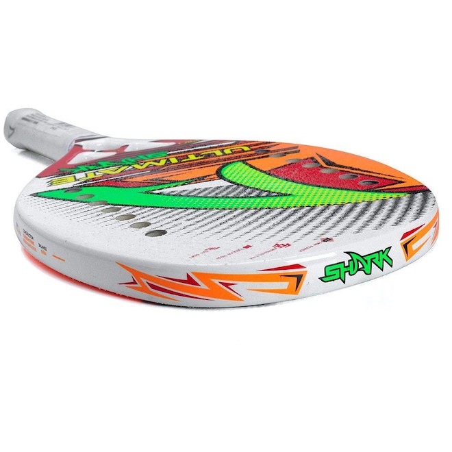 Descrição da Raquete de Beach Tennis Shark Ultimate A Shark é uma das marcas referência no mundo do Beach Tennis, conta com uma ampla linha de raquetes de todos os níveis e sempre com excelente qualidade.Um exemplo disso é a Raquete de Beach Tennis Shark Ultimate, ela foi desenvolvida com tecnologia EVA Soft.