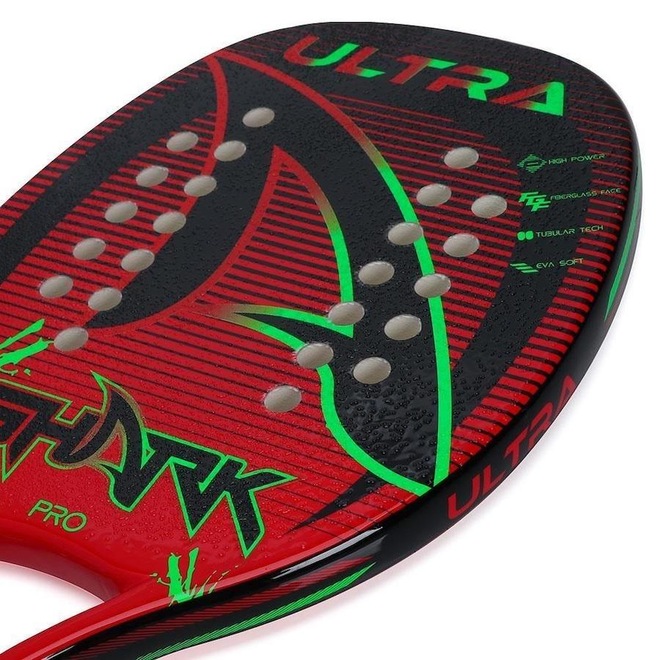 Descrição da Raquete de Beach Tennis Shark Ultra A Shark é uma das marcas referência no mundo do Beach Tennis, conta com uma ampla linha de raquetes de todos os níveis e sempre com excelente qualidade.Um exemplo disso é a Raquete de Beach Tennis Shark Ultra, ela foi desenvolvida com tecnologia EVA Soft.