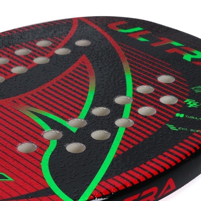 TUBULAR TECH: Tecidos tubulares duplos de carbono pré-impregnados com resinas de máxima durabilidade, proporcionando homogeneidade em todas as áreas da face e proporcionando maior rigidez, portanto, não é perdida energia da batida devido à distorção da armação - Detalhamento: Possui uma pintura com tratamento microgrânulos que ajudam a gerar efeitos.