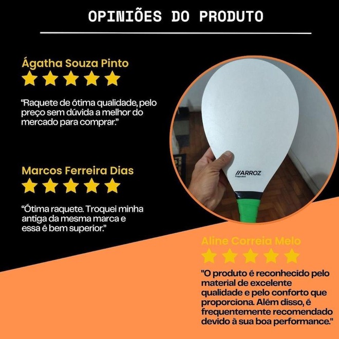 Não há dúvidas, quem compra as raquetes Arroz não se arrepende, testadas tanto por iniciantes como por atletas competidores, estão presentes nos principais campeonatos agradando aos jogadores mais exigentes.