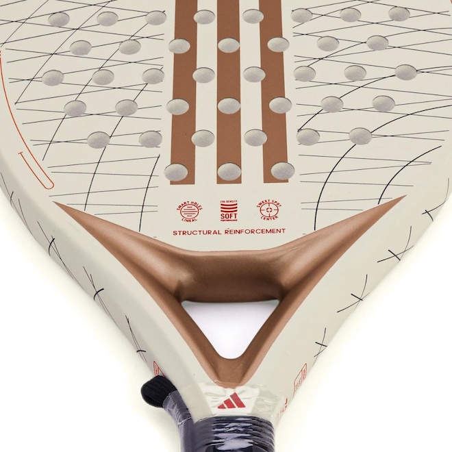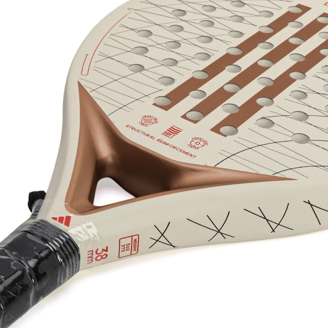 - Tecnologias: SMART HOLES CURVE, aumenta a durabilidade ao máximo. STRUCTURAL REINFORCEMENT: Aumenta a rigidez da raquete, o que resulta em mais potência e estabilidade no jogo de ataque;