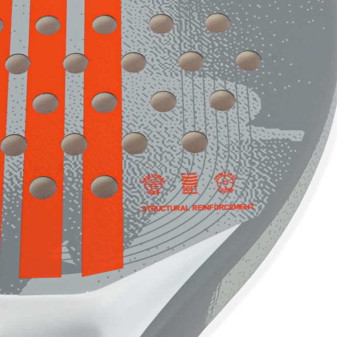- Tecnologias: STRUCTURAL REINFORCEMENT: Reforços no quadro e no coração da raquete aumentam a rigidez, garantindo maior resistência e firmeza nos impactos mais intensos. SMART HOLES LINEAL: Os furos em grupos de três aumentam a resistência da raquete, reforçando as áreas de maior impacto e prolongando sua durabilidade. FIBERGLASS: Este material é altamente elástico, garantindo melhor saída de bola em golpes mais lentos e proporcionando um toque mais suave, ideal para quem valoriza conforto no jogo. EVA SOFT PERFORMANCE: que oferece um equilíbrio primoroso entre conforto e potência;