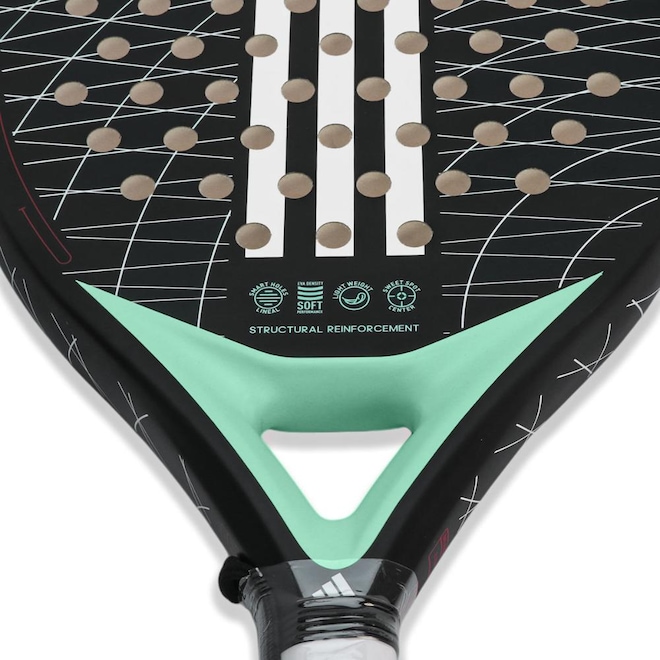 - Tecnologias: SMART HOLES CURVE, aumenta a durabilidade ao máximo. STRUCTURAL REINFORCEMENT: Aumenta a rigidez da raquete, o que resulta em mais potência e estabilidade no jogo de ataque;
