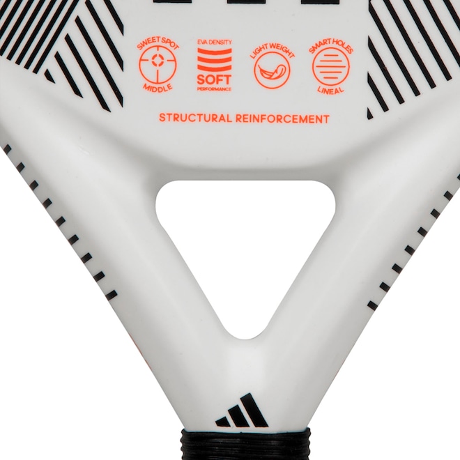 - Smart Holes Lineal: Disposição otimizada dos orifícios alinhados e agrupados em três, que aumenta a consistência e prolonga a vida útil da raquete, reduzindo áreas críticas de desgaste.