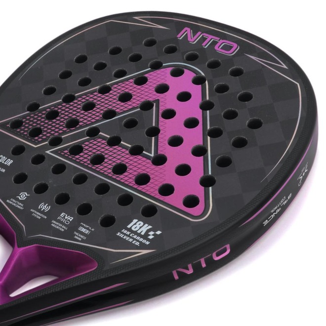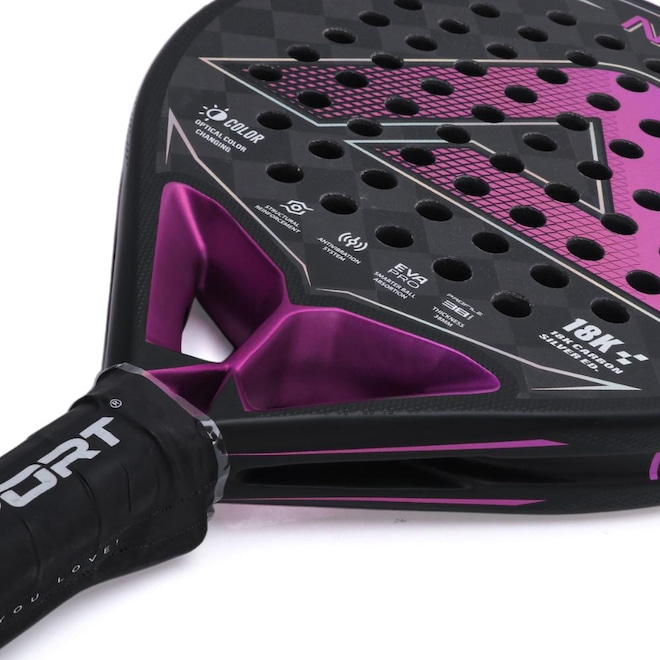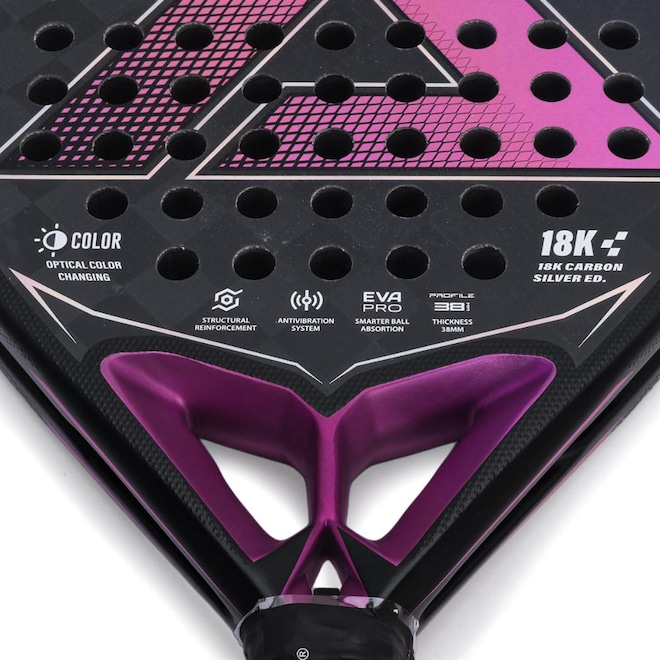 - Tecnologias: Optical Color Changing: Equipado com tecnologia de mudança de cor óptica, ele transforma seu jogo, proporcionando uma experiência visualmente dinâmica. Antivibration System: Um sistema antivibração integrado e uma tecnologia mais inteligente de absorção de impacto reduzem a tensão causada pelo impacto, melhorando o conforto e o controle. Structural Reinforcement: O reforço estrutural aprimorado e os furos de precisão estrategicamente posicionados maximizam a estabilidade e o equilíbrio, garantindo uma resposta confiável e controlada em cada golpe. EVA Pro: Espuma de densidade intermediária, garantindo durabilidade, boa absorção de impacto e precisão nos golpes.