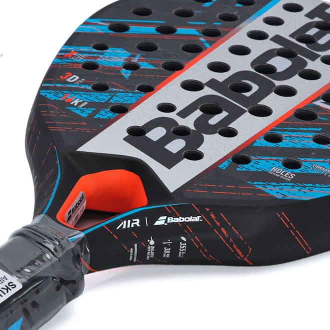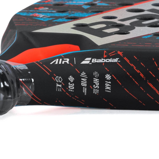 - Tecnologia: HOLES PATTERN SYSTEM é uma perfuração que aumenta seu desempenho na pista. VIBRABSORB SYSTEM: Sistema que permite uma melhor absorção das vibrações graças a um novo material de elastómero integrado ao material do núcleo da raquete que proporciona mais conforto em cada batida reduzindo o risco de lesão. 3D SPIN: Os padrões em relevo na superfície da raquete permitem-lhe golpear com mais spin. X-EVA: Núcleo com três camadas de EVA, aumenta a explosividade nas batidas fortes graças às duas camadas exteriores mais rígidas, ao mesmo tempo que fornece mais tolerância e conforto através da camada interior flexível nas batidas mais suaves;
