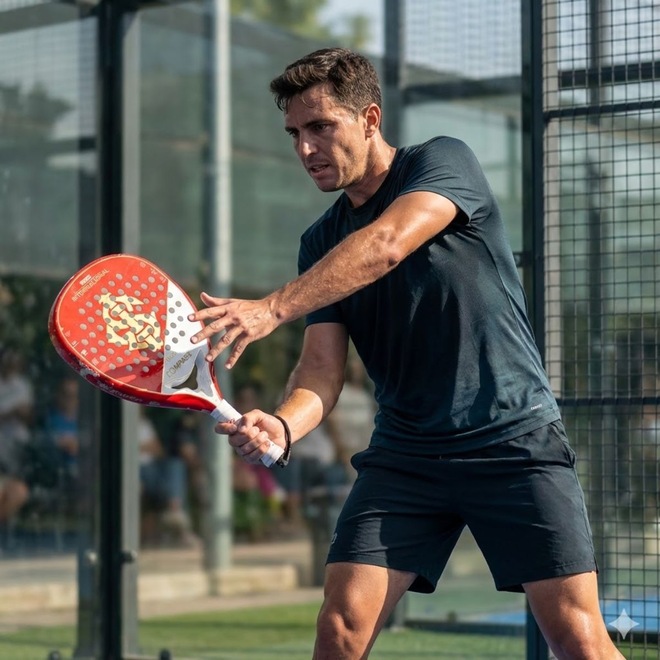 O formato oversize amplia o ponto doce, proporcionando maior margem de acerto e mais precisão nas jogadas. A face em Carbono 12K oferece excelente rigidez e potência, enquanto o núcleo em EVA Mid Soft White garante ótima absorção de impacto, sensibilidade no toque e conforto durante as partidas.