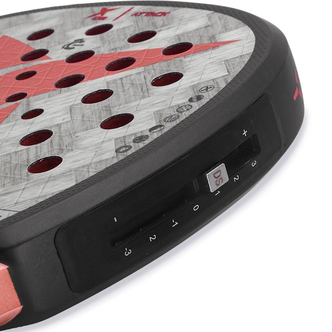 - Tecnologia: TWIN TUBULAR SYSTEM: Estrutura reforçada com tubos duplos de carbono para maior resistência e estabilidade estrutural. SMART HOLES SYSTEM: Distribuição otimizada dos furos para melhorar a aerodinâmica e os efeitos da bola. VIBRA TECH ANGLES: Estrutura angular no coração da raquete que reduz a transferência de vibrações para o braço. CORK CUSHION GRIP: Sistema anti-vibração com lâmina de cortiça na empunhadura para maior absorção de impacto. ERGO PRO PROTECTOR: Protetor de nylon leve, aderido à raquete para maior durabilidade e proteção contra impactos. POWER BEAM HEART: Estrutura reforçada no coração da raquete, proporcionando maior rigidez e estabilidade nos golpes. SMART BALANCE SYSTEM: Permite ajuste personalizado de equilíbrio e desempenho;