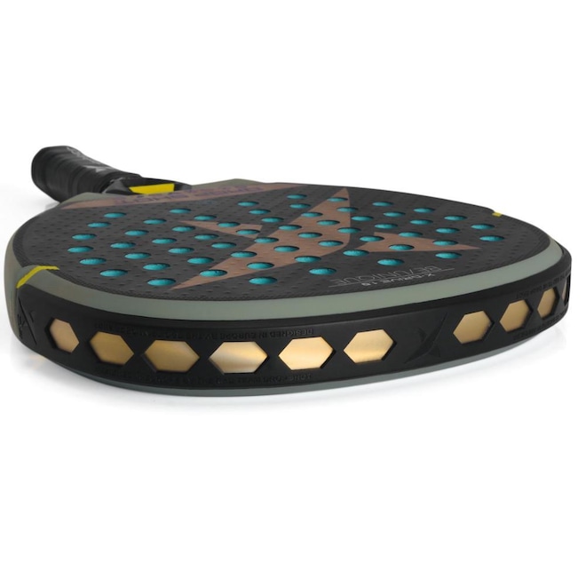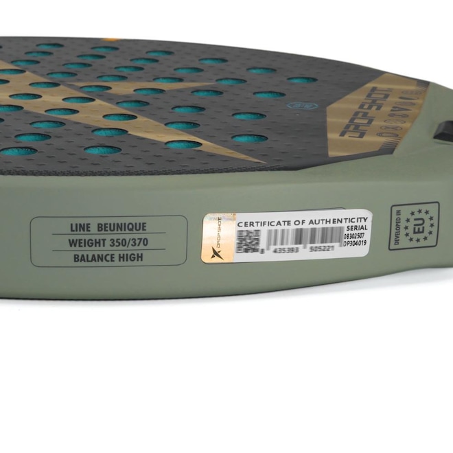 - Tecnologia: Cubicarbon, carbono 18K composto por 18.000 filamentos, tecido em 3 direções, confere à face da raquete uma consistência excepcional e uma saída de bola incrivelmente rápida. EVA Pro, presente no núcleo da raquete, oferece uma absorção de choque excepcional, proporcionando sensações de batida diferenciadas, ambivalência em potência e controle precisos. 3D Face, uma textura exclusiva em forma de losango, proporciona um giro extra à bola em rebatidas agressivas, ideal para jogadores que buscam maximizar o efeito nas jogadas. Silicone Grip Channel, canal na empunhadura com revestimento de cortiça super absorvente de 2 mm, reduzindo as vibrações na área onde o jogador segura a raquete. Cork Cushion Grip, sistema anti-vibração com uma folha de cortiça na zona do punho, proporciona ainda mais conforto e estabilidade, tornando a raquete ideal para jogadores com lesões crônicas. Smart Holes System, um sistema de distribuição dos furos na raquete. o Twin Tubular System, tecidos tubulares duplos impregnados com resinas de máxima durabilidade, proporcionam uma distribuição uniforme da energia e rigidez em todas as áreas da face, garantindo um desempenho consistente em cada golpe. Power Beam Heart, oferece rigidez adicional;