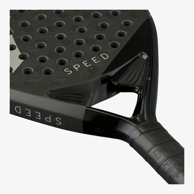 Com um design premium e acabamento fosco e brilhante, a Speed Pro se destaca pela sua superfície de impacto exclusiva, composta por um material híbrido que combina a performance da fibra de carbono e da fibra de vidro. Essa combinação garante durabilidade e potência extra nos golpes.