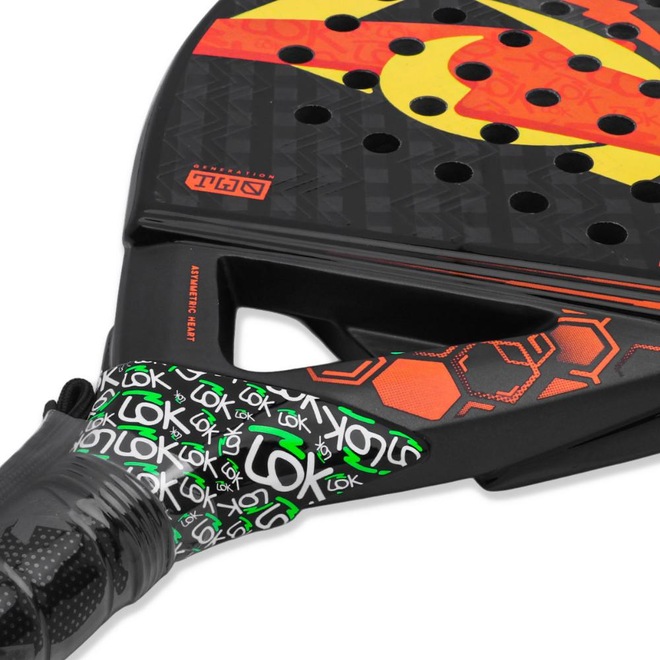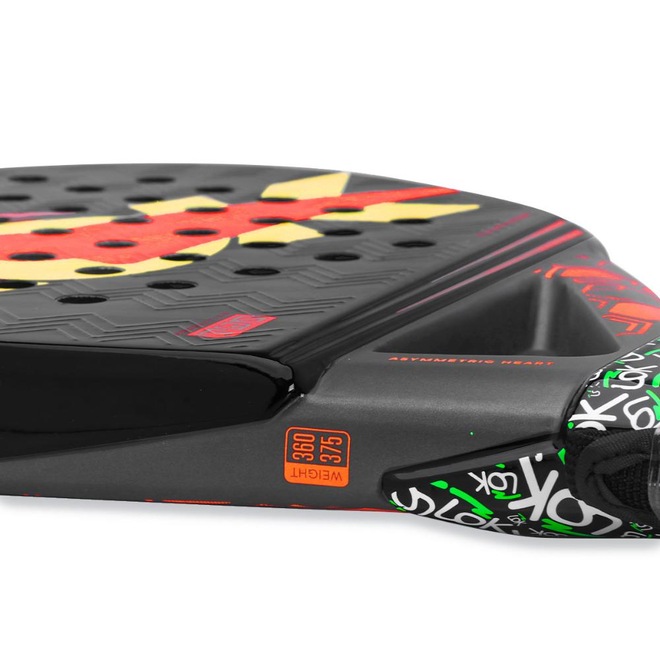 - Tecnologias: Asymmetric Heart: Design assimétrico que garante equilíbrio e estabilidade reforçando a estrutura e aumentando a velocidade da bola para mais potência. 3D Spin Lines: Potencializa o efeito da bola, aumentando o spin e oferecendo maior sensação de controle. Carbon Reinforcement: Reforços de carbono aplicados em áreas estratégicas da raquete que aumentam a resistência estrutural. Custom EVA Rubber: Borracha exclusiva de alta densidade e excelente memória para gerar mais potência. Gradual Face: Camadas escalonadas nas partes superior e inferior da face que criam ângulos que ajudam a reduzir a vibração garantindo mais conforto. Comfort Wristband: Alça de punho ajustável que se adapta às preferências do jogador. Flex Fiber: carbono misto em três planos diferentes para obter a flexibilidade adequada;