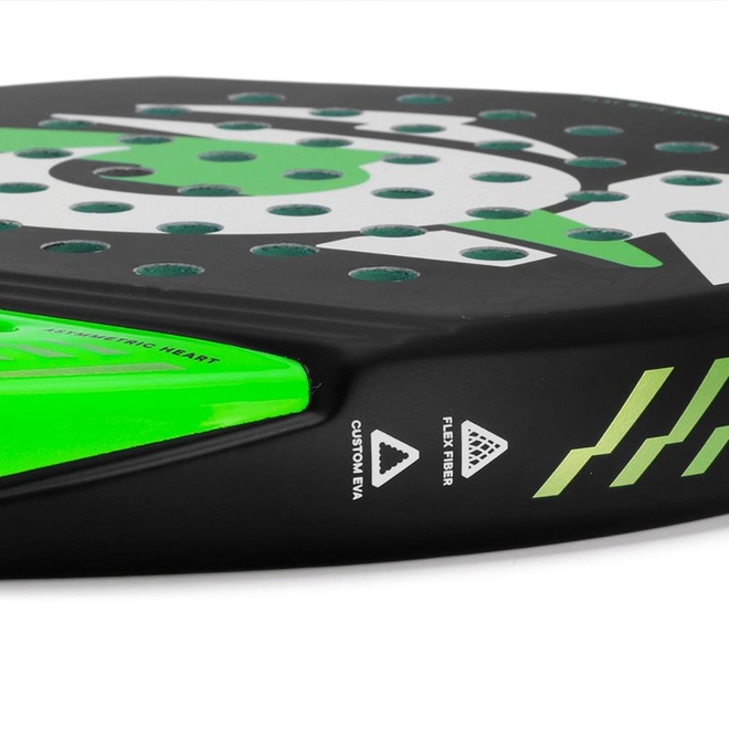 - Tecnologias: Asymmetric Heart: Símbolo das nossas raquetes, com design assimétrico que garante equilíbrio e estabilidade. Suas nervuras laterais reforçam a estrutura e aumentam a velocidade da bola, gerando mais potência nos golpes. Fiber Reinforcements: Carbono Misto. Na coleção Generation ONE, utilizamos camadas de carbono em três planos diferentes, ajustando os ângulos de união das fibras para alcançar a flexibilidade ideal. Custom EVA Rubber: As raquetes Generation ONE contam com uma borracha exclusiva de alta densidade e excelente memória, recuperando rapidamente sua forma após o impacto da bola para gerar mais potência nos golpes. Seu acabamento em verde exclusivo segue a identidade da marca. Gradual Face: As raquetes de padel contam com camadas escalonadas nas partes superior e inferior da face. Esses relevos criam ângulos que ajudam a reduzir a vibração desde o ponto de impacto até as extremidades, garantindo mais estabilidade e conforto nos golpes. Comfort Wristband: As raquetes possuem uma alça de punho ajustável que se adapta às preferências do jogador. Conta com camada reforçada, interior macio para máximo conforto e design personalizado com a identidade da marca;