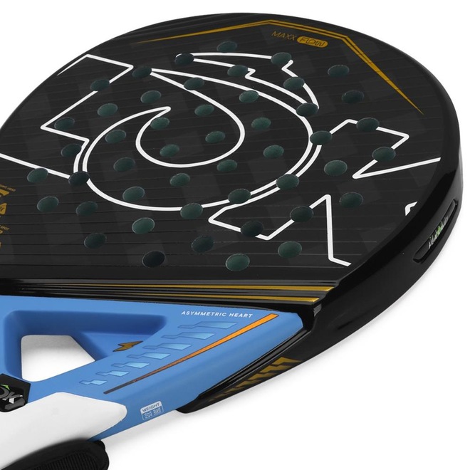 - Tecnologias: Asymmetric Heart: Símbolo das nossas raquetes, com design assimétrico que garante equilíbrio e estabilidade. Suas nervuras laterais reforçam a estrutura e aumentam a velocidade da bola, gerando mais potência nos golpes. 3D Spin Lines: Tecnologia que potencializa o efeito da bola, aumentando o spin e oferecendo maior sensação de controle. Formada por linhas diagonais paralelas ao ângulo do coração, espaçadas em 7 mm. Carbon Reinforcement: Reforços de carbono aplicados em áreas estratégicas da raquete que aumentam a resistência estrutural e garantem maior durabilidade. Custom EVA Rubber: As raquetes Generation ONE contam com uma borracha exclusiva de alta densidade e excelente memória, recuperando rapidamente sua forma após o impacto da bola para gerar mais potência nos golpes. Seu acabamento em verde exclusivo segue a identidade da marca. Gradual Face: As raquetes de padel contam com camadas escalonadas nas partes superior e inferior da face. Esses relevos criam ângulos que ajudam a reduzir a vibração desde o ponto de impacto até as extremidades, garantindo mais estabilidade e conforto nos golpes. Comfort Wristband: As raquetes possuem uma alça de punho ajustável que se adapta às preferências do jogador. Conta com camada reforçada, interior macio para máximo conforto e design personalizado com a identidade da marca. Dynamic Holes System: Sistema progressivo de furos com dois diâmetros 10 e 11 mm posicionados na área central da face, projetados para aumentar a potência dos golpes. Vibration Groove: Trilho integrado à estrutura da raquete que dissipa as vibrações do impacto da bola, com acabamento em PU para potencializar o efeito e aumentar o conforto nos golpes;