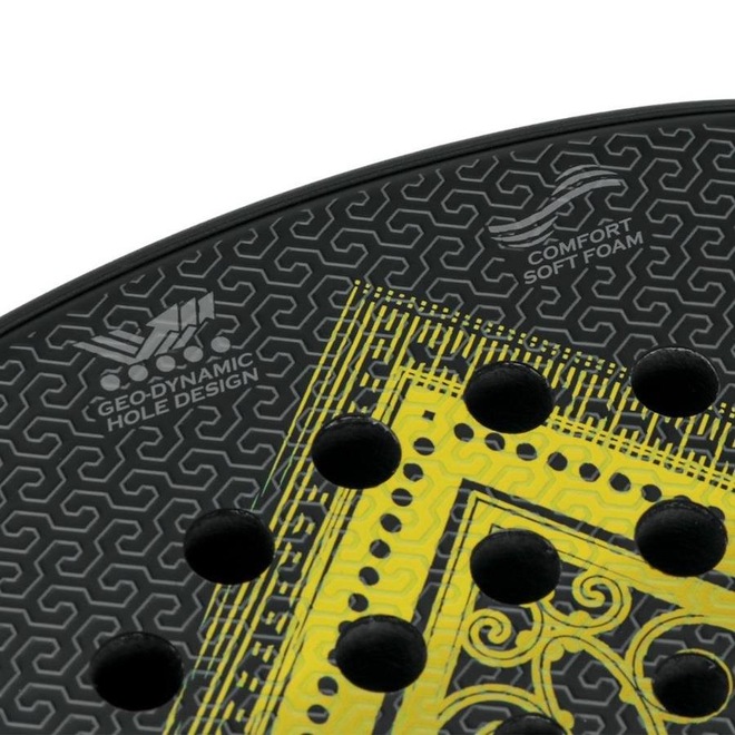 - Tecnologia: Spiral Tech Carbon, três camadas de carbono Spiral Tech garantem uma bola explosiva; Kinetic System, estabiliza o quadro para precisão e impacto limpo; Systema Kinetic de Absorção; Geo-Dynamic Hole Design, tecnologia inovadora que desempenha um papel crucial especialmente no impacto com a bola; Confort Soft Foam, proporciona conforto e aderência excepcionais; Therm Tech, oferece proteção adicional contra flutuações extremas de temperatura.