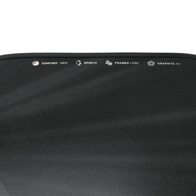 - Tecnologia: GRAPHITE / CARBON HITTING SURFACE: oferece uma sensação superior e maior controle para o jogador competitivo, criando um excelente pop na bola, mantendo um toque incrível, SPINON: Ponto de atrito mais alto que proporciona potencial de giro maciço, FOAMED CORE: Espuma estratégicamente projetada e inserida no núcleo para uma melhor performance, CONFORT GRIP SYSTEM: Material PU incorporado ao grip proporcionando amortecimento das vibrações e uma sensação mais suave;