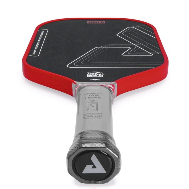 - Detalhamento: Superfície em fibra de carbono aramida que garante alta durabilidade com toque suave e responsivo. O chip NFC integrado no cabo permite que o jogador registre a raquete de forma rápida e prática. Basta aproximar o celular da área indicada para acessar o sistema de registro oficial da Joola, garantindo autenticidade e suporte do fabricante. O produto é certificado pela USAP PBCoR 43;