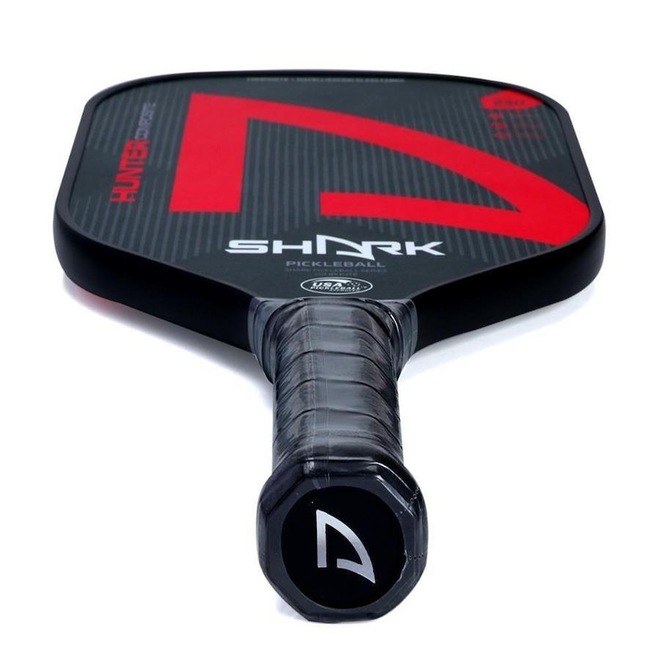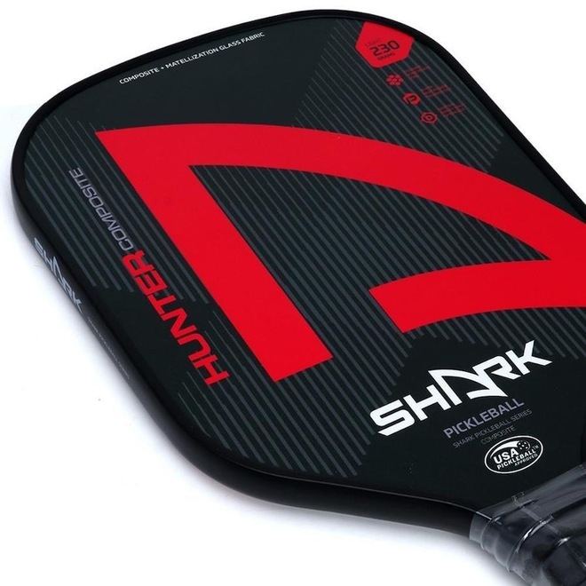 Conheça as características da Raquete De Pickleball Shark Hunter - Perfil: Pickleball - Composição: Grafite + Fibra de vidro - Tecnologia: High Power Technology, nucleo Polymer Honeycomb Core e Central Sweet Spot Optimized - Peso aproximado: 230g - Comprimento: 41cm - Espessura: 13mm - Largura: 20cm - Comprimento Punho: 12,7cm - Detalhamento: Raquete de Pickleball com o logo estampado em evidencia, escrita Shark, empunhadura emborrachada e confortável.