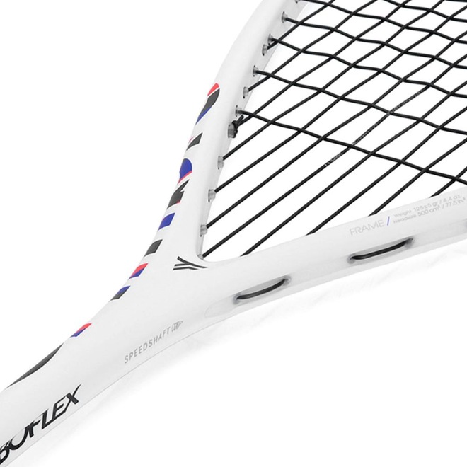 - Tecnologia: X-TOP: Foi removido o bumper tradicional da cabeça da raquete para dar lugar a uma construção completamente nova, voltada para desempenho total. Em vez do plástico convencional, é utilizado uma combinação de fibras de aramida altamente resistentes a impactos com tratamento em PTFE, que melhora o deslizamento e protege contra abrasão nas paredes e no piso da quadra. Essa inovação torna a raquete mais leve, suave e aerodinâmica, permitindo uma penetração mais eficiente no ar e garantindo máxima velocidade e potência no swing, enquanto o maior conteúdo de fibras na estrutura aumenta a capacidade de resposta , reduz a vibração e aumenta o conforto. Extended String Hole: Possui 12 ilhós alargados posicionados estrategicamente, permitindo maior movimentação das cordas. Isso aumenta a elasticidade do encordoamento, favorecendo a geração de spin e oferecendo mais tolerância em golpes fora do centro;