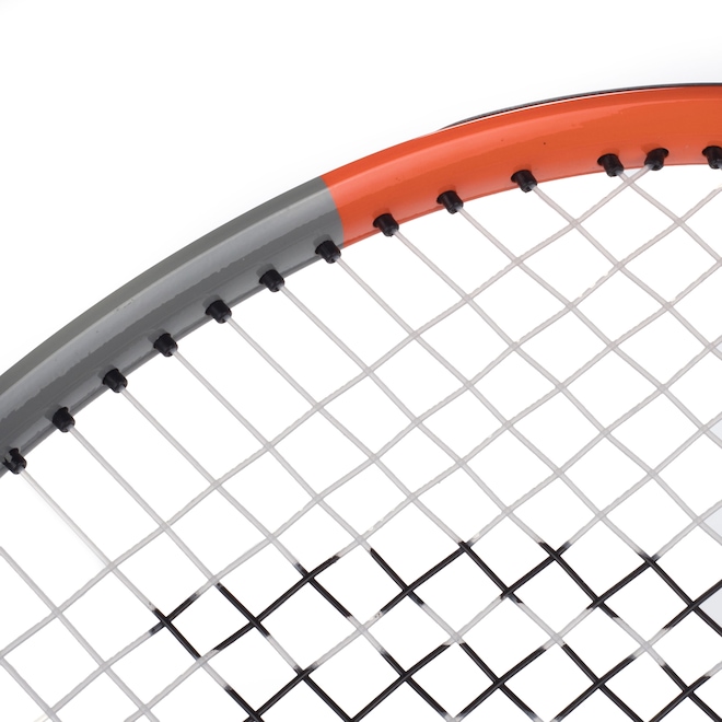 A raquete Adams é encordoada, com empunhadura emborrachada que oferece mais aderência e conforto.