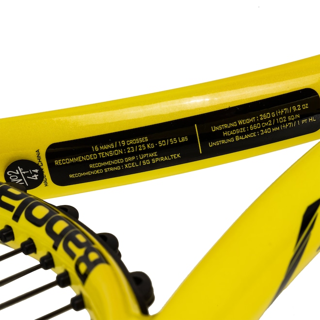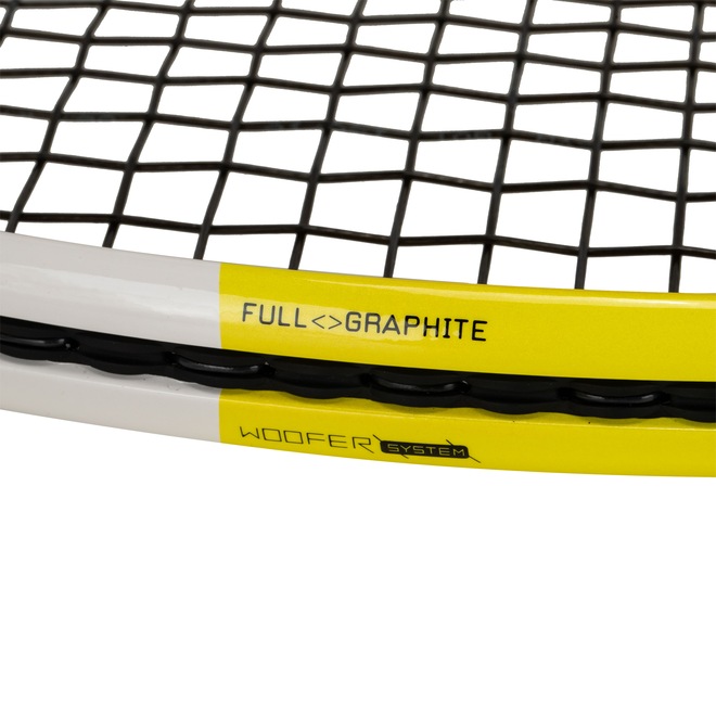 Graças à exclusiva tecnologia Woofer System da Babolat, o aro interage de forma dinâmica com as cordas, aumentando o contato da bola com a raquete em 25%, proporcionando mais controle e conforto durante as jogadas.