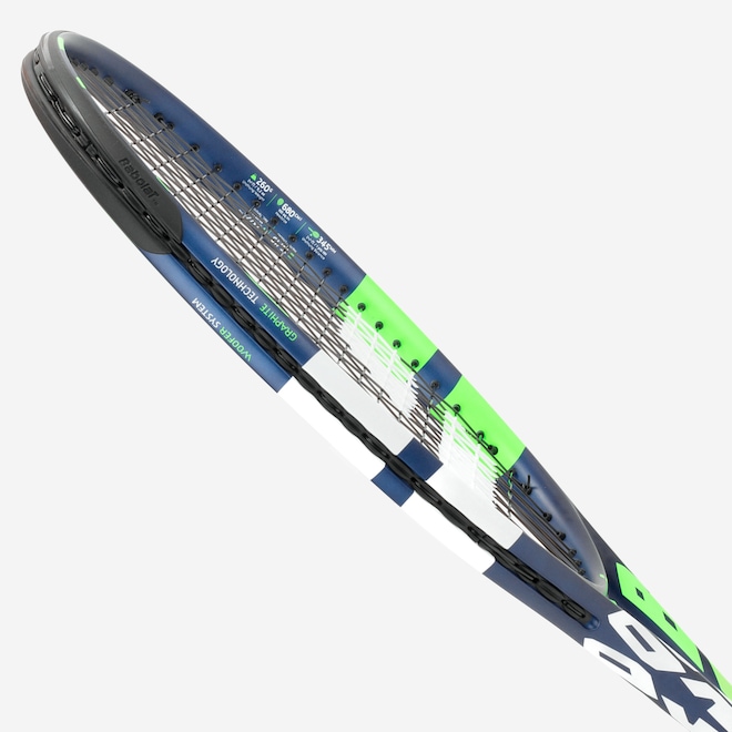 Com o exclusivo Woofer System, a interação entre armação e cordas é otimizada, promovendo um contato mais prolongado com a bola — o que se traduz em maior controle, absorção de impacto e sensação suave a cada batida.
