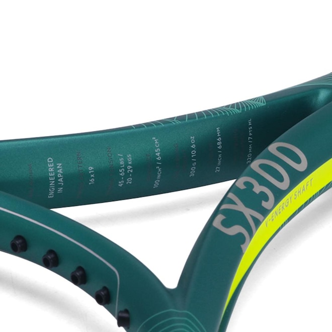 - Tecnologia: SONIC CORE com Infinergy: Oferece potência e controle com sensação suave e precisa, mesmo nos ralis mais intensos. SPIN BOOST XT GROMMETS: Aumentam o giro e a potência, permitindo golpes mais fortes e precisos em qualquer parte da quadra. VIBROSHIELD: Reduz as vibrações, proporcionando maior controle e uma sensação mais confortável, mesmo durante trocas potentes e de alta velocidade. EIXO V-ENERGY: Melhora a estabilidade e aumenta o giro e a potência, permitindo swings mais rápidos e precisos. SPIN BOOST FRAME GEOMETRY: Design exclusivo do quadro melhora o desempenho de rebatidas, proporcionando mais rotação, potência e estabilidade aprimorada, permitindo que os jogadores batam com confiança e precisão;