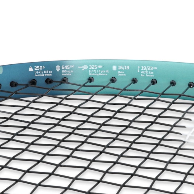 - Tecnologias: FSI Power: Novo padrão de cordas e grommets em diamante ampliam o sweet spot, maximizando a potência em todas as batidas, mesmo fora do centro. Elliptic Frame: Estrutura elíptica oferece resistência e rigidez ideais para uma potência excepcional. HTR System: aumenta a rigidez do aro, gerando golpes explosivos com facilidade;