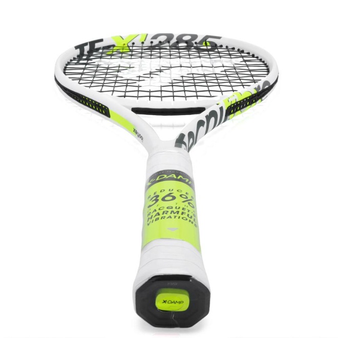 - Tecnologia: TF-X1, projetado para fornecer potência máxima, ergonomia rígida que gera mais vibrações. X-DAMP, tecnologia única desenvolvida com TecniLab para absorver essas vibrações e proporcionar o máximo conforto. X-DAMP, 36% menos vibrações prejudiciais para o braço e menos fadiga. Ergonomia do quadro, estrutura otimizada com uma peneira arredondada e seções reforçadas para ganhar potência e estabilidade. ISOFLEX, rigidez escalável em todo o tamanho da cabeça e adaptada a cada corda, permitindo que a área do sweetspot seja ampliada para maior tolerância e mantendo velocidade e precisão em batidas descentralizadas;