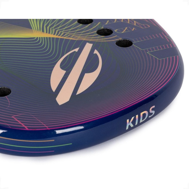 Raquete desenvolvida em material leve e resistente, adequada para uso recreativo por crianças.