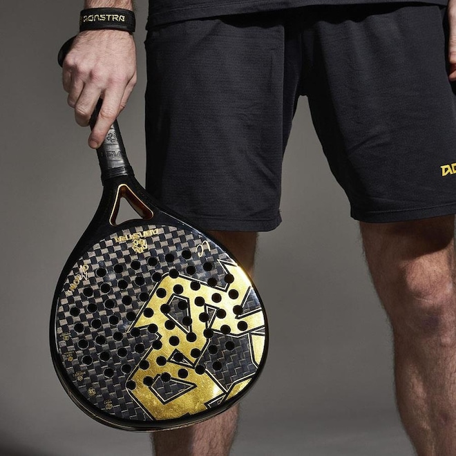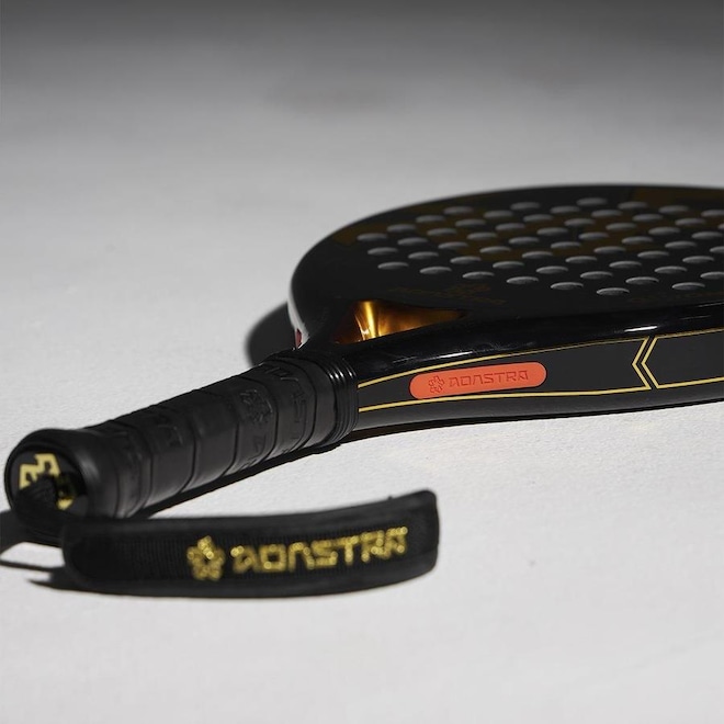 O frame 100% em Carbono confere durabilidade e leveza, resultando em uma raquete de alto desempenho.