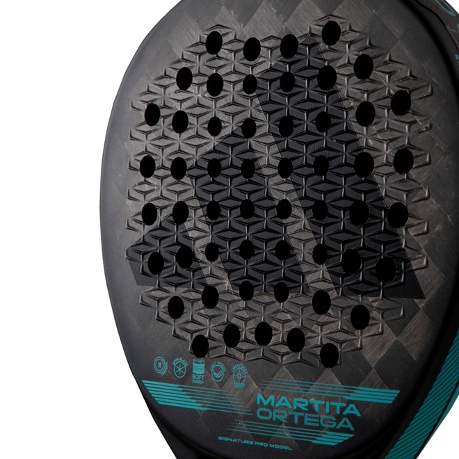 - Dynamic Air Flow: A aerodinâmica chega ao mundo do Pádel! Esta tecnologia reduz a resistência do ar na zona do cabo (pescoço), aumentando a velocidade nas pancadas, especialmente nas mais potentes.