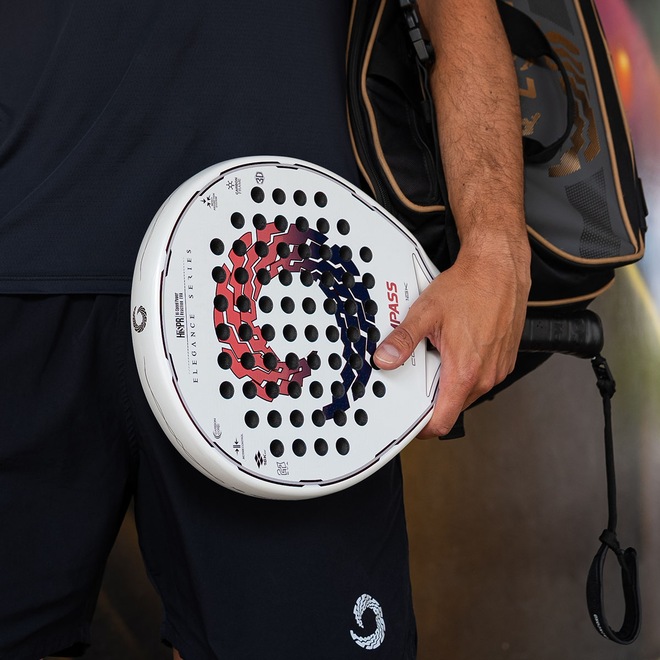 Seu formato redondo proporciona um ponto doce ampliado, facilitando golpes mais consistentes e precisos. A combinação da face em Carbono 16K e do núcleo EVA Mid Soft Black garante excelente resposta e absorção de impacto, enquanto a tecnologia AV-Block reduz vibrações, proporcionando maior estabilidade.